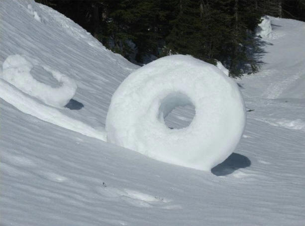 Muistatko kuinka lapsuudessa, kun lunta satoi, kaikki yrittivät nopeasti rullata iso lumipallo? Olet joko pelannut lumipalloja tai veistetty lumiukkoja. Luonnolla on oma tapa veistäytyä lumesta – lumi munkkeja. Tämä harvinainen muoto muodostuu ihanteellisissa olosuhteissa. lämpötila lumisateen tai lumimyrskyn aikana. Jos osa on lunta tarttuu yhdessä toisen osan kanssa, sitten painovoima ja tuuli tekevät omansa osa työtä, ja com vierii itsensä. Mutta tässä tapauksessa taipumus puristus luo toruksen muodon, joka voi nousta jopa 66 cm: iin korkeus.