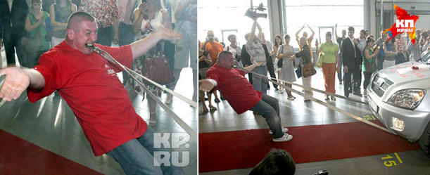Ravil Kravchuk, lempinimeltään Rav the Magnificent joukon edessä veti hampaillaan ulos kolme autoa, joiden kokonaispaino oli yli neljä tonnia – ja veti niitä jopa 20 metriä! ”Minulle 4 tonnia ennätys, – urheilija jakaa. “En vieläkään pysty siihen!” Vuonna 2002 alareunassa Ison-Britannian kuningatar Elizabeth II syntyi kaksikerroksinen bussi, jossa oli sata matkustajaa yhteistä painaa noin 7 tonnia. Komissio kirjasi tämän saavutuksen. Guinnessin ennätyskirja. Muuten, olin siellä ainoa venäläinen, joka esiintyi. “Saavuttaakseen vaikuttavan Seurauksena Ravil omistautui 20 vuotta extreme-urheiluun. ensimmäinen urheilija nosti painot hampaillaan, sitten 10 ja 50 punnan pannukakut, ja lopulta kouluttivat leuan lihaksia siinä määrin kuin pystyy pidä sauvaa, joka painaa 120 kg! Totta, Ravil-temppujen aikana hampaat rikkoutuivat, joten jouduin asettamaan implantit.