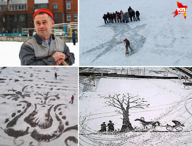 Semyon Bukharin työskenteli 52 vuoden ajan palomiehenä ja kaivostyöntekijänä. Hän jäi eläkkeelle kolme vuotta sitten. Sain työpaikan vahtimestarina koulussa. sitten en uskonut, että hän, kouluttautunut sisustaja, löytäisi täältä ammattiisi. Harjan sijasta – lapio. Kankaan sijasta – koulu piha. Idea luoda lumessa tuli spontaanisti – koululaiset ajattelivat. Heistä tuli myös kiitollisia katsojia. Semyon Bukharin ei ole innokas kunniaa. Sanoo, että kaikki on lapsille. Shkolota vastauksena soittaa hänelle hieno taiteilija.