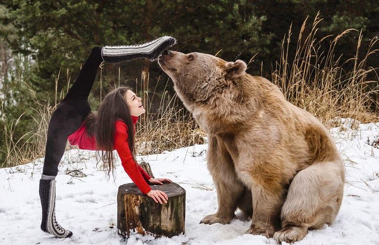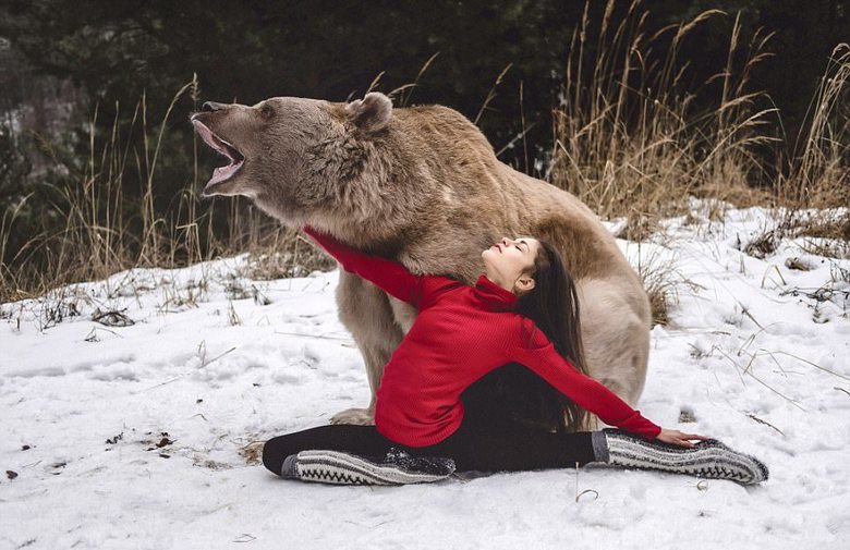 Kuuluisa australialainen akrobaatti Stephanie Millinger valmisteli Internetin käyttäjille upea istunto uutta vuotta varten, missä hän ei vain osoita ymmärrettävää tavalliselle miehelle vartalon joustavuus, mutta myös entistä fantastisempi ominaisuus – todellinen ystävyys ja kumppanuus heidän akrobaattisessa käytännössään villi ruskea karhu.