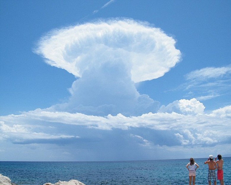 Katsokaa kuvaa sienipilvillä, onko se todella mahdollista olettaa, että tämä on vain vahingossa tapahtuvaa höyrystymistä taivaalla? ..