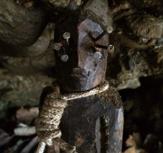 Kolme silmää on veistetty taitavasti kaiverrettuun humanoidikuvioon naula, ja köysi, jossa on silmukka roikkuu hahmion kaulassa. Saatat ajatella että tämä on jonkinlainen seuraajan tekemä taikuudenukke perinteinen afrikkalainen voodoo-uskonto. Voidaan vain arvata kuka juuri hän loi tämän hahmoa, mihin tarkoitukseen hän pilasi sen ja miksi, itse asiassa jätti tämän kauhean patsaan tyhjään luolaan.