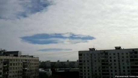 Kolme valtavaa reikää pilvissä Moskovan yläpuolella 9. maaliskuuta 2013. jotain tai lensi tai lensi tai vain epätavallinen ilmakehä ilmiö.