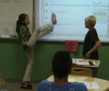 Ohio-matemaatikko Mary Gannon raajat, oppinut kirjoittamaan taululle kanssa jalat.