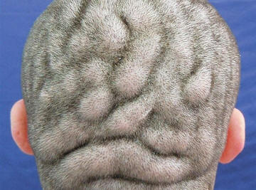 Nyt hänen päänsä iho on saavuttanut aivojen muodon: parietaalisessa ja niskakyhmyn alueelle muodostuneet raa’at tuskalliset ihon laskoset, muistuttaa aivojen gyrusia. Nuori mies ei kuitenkaan ole huolissaan vikastaan, hän ei piilota päätään hatun alla. Hän on jopa ylpeä epätavallisesta kalostaan. Yleisimmin pachidemia taitettu tapahtuu miehillä ja kehittyy yleensä pian sen jälkeen murrosikä. Taudin syyt ovat edelleen tuntematon. Pään ulkonäön parantamiseksi voit tehdä sarjan kosmeettiset toimenpiteet. Se on kuitenkin melko kallis. menettely.
