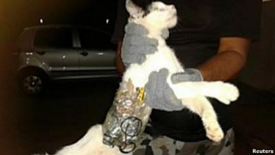 Brasilian vankilassa pidätettiin kissa, jolla vangille tarkoitettuja esineitä löydettiin. Kielletyt lasti kiinnitettiin kissalle teipillä. Vartijat huomasivat epäilyttävä lemmikki, kun se kulki pääosan läpi vankilan portti. Tämä tapahtui Arapirakan vankilassa Brasilian osavaltio Alagoas. “Hyökkääjä” yritti salakuljettaa vankilaharjoitukset, tiedostot, matkapuhelin laturilla laite ja kuulokkeet. Kissa vietiin paikallisiin turvakoteihin eläimiä.