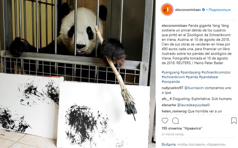 Esimerkiksi myydään samanlaisia australialaisen pandan Yang Yangin maalauksia enintään 500 euroa, ja jotkut niistä voi ostaa huomattavasti halvempaa. Tässä tapauksessa sinun ei tarvitse edes mennä Australiaan, tarpeeksi odota pandan vierailevan taas jossain eurooppalaisessa Eläintarha: tämän vuoden elokuussa hän esimerkiksi vieraili Wienissä, yllättäviä ja ilahduttavia kävijöitä Schönbrunn-menageriin.