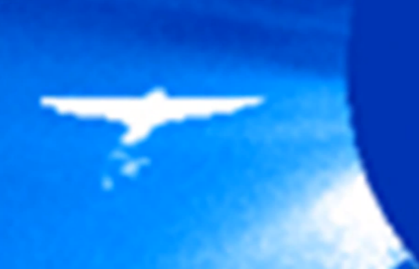 valokuva avoimista lähteistä Satelliittiseurannasta lähetetyssä kuvassa valaisimen ulkopuolella, jälleen kerran nähdään mystisen muodon esine Valtavat siivet levisivät
