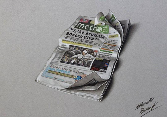 Marcello Barenghi on kuuluisa lahjakas kuvittaja ja Italiassa asuva graafinen suunnittelija. mestarillisesti Varjojen ja kohokohtien avulla italialainen luo epäuskoisen realistiset piirustukset silmillemme yksinkertaisimmista ja tuttuimmista asioita. Kun katson hänen töitään, en voi edes uskoa sitä heidän luomiseensa käytetty tavallisia maalitarvikkeita, jotka ovat helppoja voidaan ostaa mistä tahansa myymälöistä, jotka ovat erikoistuneet myyntiin paperitavarat.