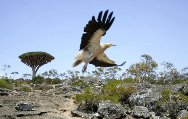 20. Egyptin korppikotka lennossa Socotran saarella 27. maaliskuuta 2008. Egyptin korppikannat – yli 1000 Sokotrassa ja on sen keskittynein väestö alle uhanalaisia lintuja maailmassa. (Reuters / Khaled Abdullah)