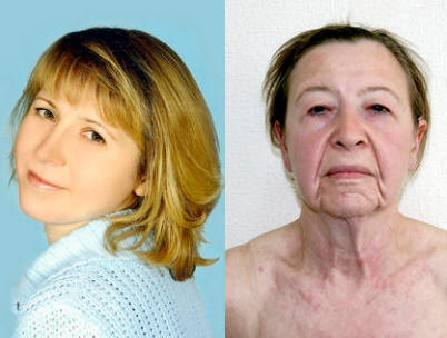 Helmikuussa 2007 asui Kirovogradissa Elena Sidoruk synnytti pojan. Supistukset olivat vaikeita, nainen kolme päivää synnytyksen jälkeen ei voinut nousta sängystä. Ja kun lopulta nousi sairaalasta pankot ja keittiön peiliin, tuskin pystyvät pidättämään huutaa. alkaen toinen nainen katsoi häntä peiliin. Muukalaisella oli piirteitä Elenan kasvot, mutta hän näytti paljon vanhemmalta: turvonneet silmäluomet, turvotus kasvoissa, syvät ryppyjä. Kävi jopa naisella, joka oli synnytyksessä hänen sukulaisensa tuskin tunnisti vanhaa Elenaa. “Synnytyksen jälkeen monet naiset näyttävät huonoilta ”, lääkärit vakuuttivat. – Pian kaikki ohi. “- Lapseni ja minä purettiin sairaalasta, ja aloin odottaa parannuksia, sanoo Elena Sidoruk. – Minun sijaan ulkonäkö huonontunut katastrofaalisesti. Silmät uivat niin ylempi silmäluomen peitti alemman. Kehosta tuli ohut, vaikka paino ei ole on muuttunut. Minun piti juoksi lääkäreiden luo. Kaikki tarkistivat minut asiantuntijat kirjoittivat lääketieteelliseen korttiin: “Terve.” Hyväksytty vielä useita viikkoja, ja vartalo alkoi yhtäkkiä … turvota. Heräsin keskellä yötä ja seisoen peilin edessä seurain kasvojani äänenvoimakkuus kasvaa, ikään kuin joku täyttäisi sen, kuten ilma pallo. Itin kauhua enkä tiennyt mitä tehdä. Kerran poika Sasha alkoi itkeä, juoksin hänen sänkyyn, halusin ottaa vauvan ja … ei voinut. Kädet näyttivät halvaantuneilta, niistä tuli tuhma. Sitten jalat kieltäytyivät. Mieheni vei minut sairaalaan. Lääkäreillä oli paljon tutkimusta ja päätelin, että olen turmeltunut jonkinlainen virus. Muutamaa päivää myöhemmin raajat palasivat herkkyys, ja pyysin menemään kotiin: Odotin pieni vauva. Ja parin viikon kuluttua tulin sairaalaan itse – kanssani paisunut uskomattoman koon punaisiin kasvoihin. Minulle annettiin diagnoosi: “Tuntematon alkuperä allergia.” Mutta kuinka kohdella häntä lääkärit eivät tienneet. Näytti siltä, että kasvoni ja kehoni ikääntyivät ei päivä päivältä, vaan tuntia. Aluksi posket putosivat, sitten leuka putosi. Ennen synnytystä Olin nuoren naisen kaula: sileä, ilman vakoja. Ja yhtäkkiä iho päällä notko kuin 70-vuotias isoäiti! Et voi kuvitella, että minä tuntui katsovan peiliin. Nuoresta kukkivasta naisesta, minä muuttui vanhaksi vanhaksi naiseksi. Ja se tapahtui hyvin, hyvin nopeasti – kuten kauhuelokuvissa. Olen kasvanut 12 kuukauden ajan Kolmekymmentä! Vatsan iho muuttui letargiseksi, muodostunut rumaksi taittuu. Käsien sisäpinnalla (kainalosta kyynärpäähän) iho roikkui kuin kaksi pientä rasvaa naista. Se oli kauhua!