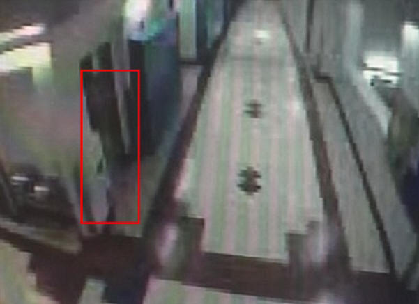 Ja yhtäkkiä operaattori huomaa yhdellä näytöllä epäselvän liikkeen. Läpikuultava hahmo liikkuu käytävää pitkin. Sitä on vaikea nähdä kuvakaappaus alla, mutta videossa sen liike on melko havaittavissa. Tämä ei ole henkilö, mutta jotain epäselvää ihmisen ääriviivat.