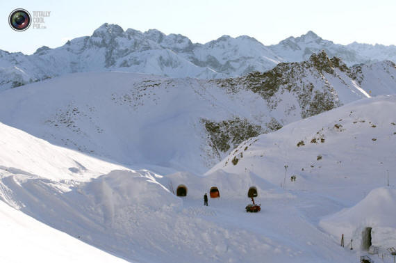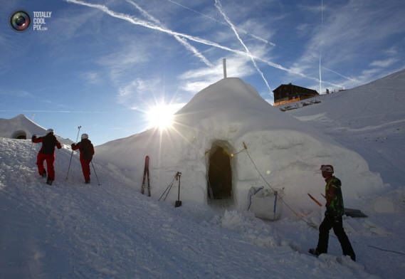 15. Poreallas lähellä iglooja, Nebelhornin vuoren huipulla.