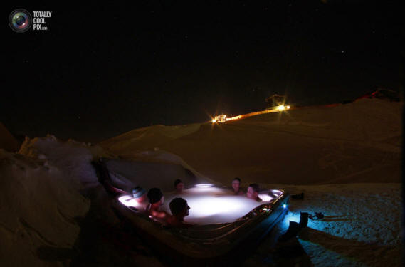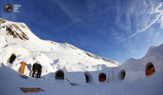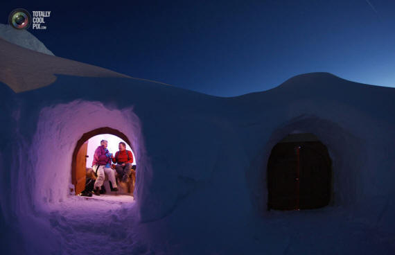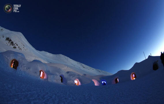 Se näyttää hämmästyttävältä. Igloo Village koostuu 11 igloosta, baarista, ruokasali ja poreallas, jossa 40 astetta kuumaa vettä.
