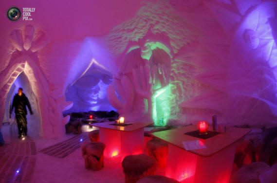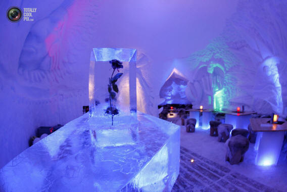 14. Jäälevyistä valmistettu baaritiski, rakennettu iglubaariin taustavalaistu.