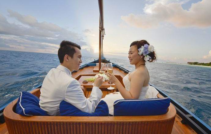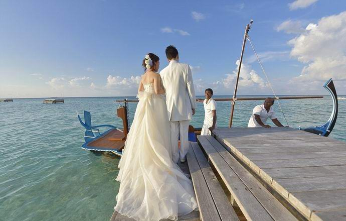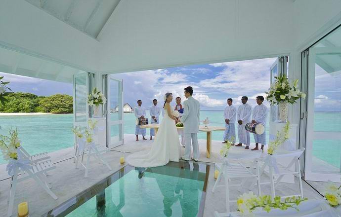 Ylellinen lomakeskus nimeltään “Landaa Giraavaru” tarjoaa morsiamet ja morsiamet puolisoiksi suoraan Intian valtamerellä, menee alttarille ihastuttavassa kappelissa, jossa on läpinäkyvä lattia. Polku hääpaviljonkiin ei ole yhtä viehättävä – päästä hänelle, sinun on ensin mentävä rannalle, sitten uida noin neljäkymmentä minuuttia puisella veneellä, jolla vieläkin enemmän on ystäviä romanttinen tunnelma.