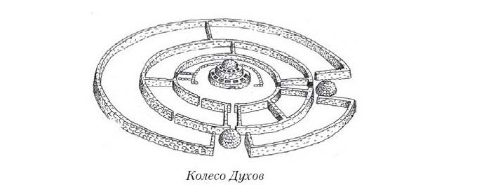 Hautakammiota ympäröi viisi rengasta, joista suurimman halkaisija on sata viisikymmentäkaksi metriä. Renkaiden korkeus on yhdestä kahteen ja puoli metriä tämä ei ole kaikki renkaat ovat kiinteitä. Jotkut heistä ovat lyhyitä seinät, jotka muodostavat ominaiset neuleet tässä jättiläisessä pyörä. Seinämän paksuus vaihtelee kolmesta kolmeen ja puoli metriä. Hautaushauta keskellä on viisi metriä korkea ja halkaisija kaksikymmentäviisi metriä.