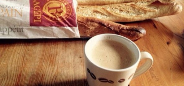 Ranskalaiset juovat kahvia voileipällä, jota varten he käyttävät pehmeä, juuri ostanut patonki.