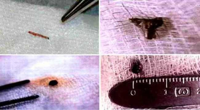Se oli kuin “matriisi, jossa tavalliset neliösolut, joka sisältää sulkeumia binaarikoodin muodossa. “Pseudotieteellinen yleisö, ja sen jälkeen kaikkialla oleva lehdistö kastoi nämä esineet “implantit” (lat. “vartaloon istutetut”). siksi olemme sopineet, että kutsumme tiettyjä ei-biologisia esineitä alkuperä, jonka tuntematon ihminen on upottanut elävään ihmisen kudokseen tavalla ja tuntemattomiin tarkoituksiin. Kuitenkin alussa pieni artikkeleissa tarkastellaan tapauksia, joissa metallien pelkkä ilmentyminen on Homo-kehossa Sapiens. Tietysti metalliset fragmentit esiintyvät ihmiskehot taistelukentän loukkaantumisten seurauksena, kotitalous- ja teollisuusvammat, kirurgiset toimenpiteet jne. Täällä niitä ei pidetä triviaaleina, vaikka edellä mainituissakin Näissä tapauksissa ilmenee erittäin mielenkiintoisia ja salaperäisiä ilmiöitä. Paavali Suositun teoksen “Paasto” kirjoittaja Bragg kuvaa tapahtuma, joka hänelle tapahtui. En voi taata tarjouksen oikeellisuutta, mutta tapahtumien kulku on kuvattu aivan oikein. “Oli neljätoista päivä vuotuinen paastoaika kuukaudessa. Purjehdin veneen alas pienen joen kulku. Yhtäkkiä terävä vaikea kipu, johon liittyy kouristuksia. Vaikeuksin pääsin ulos rannalla, ja täältä minusta tuli luonnollisesti noin puoli kuppia elohopeaa. Olin hämmästynyt, mutta muistan myöhemmin, että lapsuudessa minä täynnä lääkettä “Calomel”, koska kärsin kroonisesta vilustuminen, ja tämä lääke valmistettiin elohopealla “Mutta tapaus on hyvin uusi ja paljon salaperäisempi. Nikolaevsk-on-Amurin 53-vuotias sähköasentaja Pavel Popkov kääntyi piiriklinikka vasemman olkapään flegmonista. Mikä se on kirurgin ollessa yllättynyt ja hämmentynyt avaamisen yhteydessä tulehtuneen alueen, hän löysi myrkyllisesti hohtavan haavan elohopeaa. Myöhemmin suoritettu fluoroskopia löytyi potilaasta, jonka biokemialliset analyysit olivat täysin normaaleja, läsnä oli valtava elohopean määrä kehossa. Myrkyllinen metalli “kipinöi” sähköasentajan kohdalla kaikkialla kalloa lukuun ottamatta. Elohopea löytyy verenkiertoon järjestelmä ja imusolmukkeet. Muuten, Popkov kiinnostui miliisi – Paavali työskenteli aiemmin kullankaivoksessa Yritystä, ja siellä, kuten tiedätte, käytetään jalostamiseen (kullan talteenotto) on juuri elohopeaa. Myöhemmin tuli tietoiseksi siitä useita kuukausia ennen elohopeaflegmonilla kuvattuja tapahtumia 18-vuotias mies tuli lääkäreiden puoleen – niin kullankaivoksella ei ollut mitään tekemistä, toisessa tapauksessa vain lääkäreitä osoittautui valppaammaksi, uteliaammaksi ja ammattimaisemmaksi. Ja täällä täysin eri luokka havaittavissa elävissä ihmisen kudoksissa tuotteet tarjoavat paljon enemmän tilaa pohdintaa ja herättää tutkijoilleen selvää huolta. Kuten se jo oli huomannut aiemmin, 80-luvun lopusta lähtien yhä enemmän raportteja lihaksen ja luukudoksen uuttaminen potilaiden lääkäreille käsittämättömiä kipuja, outoja kohteita. Niiden lineaariset mitat vaihtelivat millimetrifraktioista. senttimetreihin. Tuotteet sijoitettiin odottamattomimpiin kehon osat – jalat, vatsan seinä, nenän väliseinä ja niin edelleen päälle. Erityispalvelujen kasvavat raportit ovat huolestuneita Yhdysvallat (FBI, NSA ja ennen kaikkea CIA) on tiiviisti mukana annettu ongelma. Amerikkalainen tiedustelu jopa ilmestyi kokopäiväinen asiantuntija – tri Roger Lear. Muuten, melkein ensimmäinen tarina tohtori Learin metalliimplantin poistosta potilaan jalat ohittivat sanomalehtien ja aikakauslehtien sivut ja on todennäköisesti yksi harvoista julkistamisesta. Loput, kuten tavallisesti, peitetään salassapiton verhoon ja suljetaan tiedot pelottavalla leimalla “Top Secret” turvallisesti, kuten yhdessä ensimmäisistä X-Files-jaksoista, haudattu salassa maan alla varastotilat. Kuvailkaamme lyhyesti tätä tapausta vain saada käsitys siitä, mitä muodostaa implantti. 90-luvun puolivälistä lähtien tutkittavaksi tri Lira CIA: lle lähetti yli kaksisataa ihmistä. Jokainen heistä suostui vieraiden esineiden uuttaminen niiden pehmeistä tai luukudoksista. Yksi ensimmäisistä palautetuista esineistä oli samanlainen kuin “T” -kirjain noin senttimetri. Hän oli upotettu terveen naisen jalan luuhun ja peitetty orgaanisella alkuperää olevalla tummalla membraanilla, jota ei voida muuttaa leikkaus terävällä lääkinnällisellä skalpellilla. Lisäksi kalvo sulatettu omituisesti implantin raudasydämen kanssa ja jalan luut. Kohde itse peitettiin mikroskooppisilla prosesseilla, istutettu luihin, rustoihin ja jopa hermoihin. Kankaat ympärillä implantin rakenne oli epätavallinen, ne olivat siirtyneet ja ikään kuin “muuten koottu.” Samat tapaukset todettiin Venäjällä. Alussa 2000 Pietarin kiireellisen lääketieteen tutkimuslaitoksessa. II Janelidze 30-vuotiaan potilaan tietokoneella asiantuntijat löysivät tumman pisteen näyttöruudulta. at paikan yksityiskohtainen tutkimus muuttui yhtäkkiä monimutkaiseksi geometrinen muoto, joka koostuu useista suorakulmioista. Alle viiden millimetrin mittainen vieras kappale oli selvästi keinotekoista alkuperää ja erottui selvästi enemmän kirkkaat aivosolut. Ei tunnista potilaan patologista muutokset, asiantuntijat syyttivät tosiasian läsnäolosta ulkomaalaisen kallossa ottaen huomioon väärinkäsitykset, jotka ovat “merkityksettömiä”. hyvin ja nyt mielenkiintoisin – mikä se on, missä ja miksi? siellä useita hypoteeseja vieraiden muodostumien esiintymisestä elävässä kudoksessa. Kuten aina, pelkäänyt kaupunkikunta syntii erityispalvelujen machinaatioista. kuten, valtarakenteet, joilla saadaan valtaan kuuluvien kokemaan ja ota käyttöön viimeisin liikkeenohjausjärjestelmä ja mikä pahempaa, pahaa ajattelemattoman väestön ajatukset ja käyttäytyminen. tämä versio ei kestä kritiikkiä, koska tekninen ja uutettujen implanttien biologinen taso on kaukana edellä
