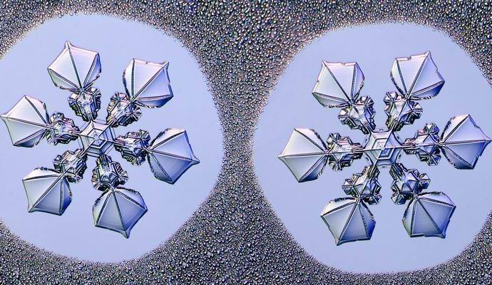 Tulos on kuitenkin kaksi identtistä ulkonäöltään lumihiutaleet eroavat atomien rakenteesta. Libbrecht vertasi heitä identtiset kaksoset, joilla on samanlainen ulkonäkö eri merkkejä.