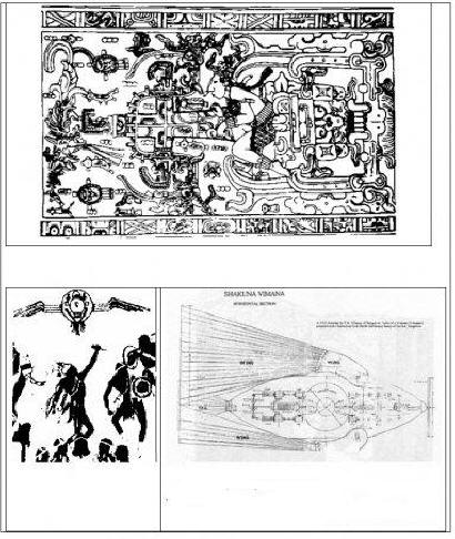 Kaaviot ilmakuvista muinaisilta muistomerkeiltä kulttuuri, mukaan lukien vimanan piirtäminen, kopioitu muinaisista Vedinen tutkielma “Vimanika sastra”.