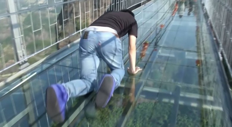 Jotkut ihmiset, jotka pelkäävät kuolemaa korkeuksista, tällaiset nähtävyydet ovat yleensä vasta-aiheisia. Se on hienoa esittelee videon (katso alla), jonka hän keräsi verkossa Internet on jo miljoonia näkymiä. Se näyttää hetken miten kiinalainen nainen vie rakastajansa lasisillan reunaan, epäonnistuu silmämääräisesti, ilmeisesti suostuen tekevänsä “miellyttävä yllätys” hänelle.