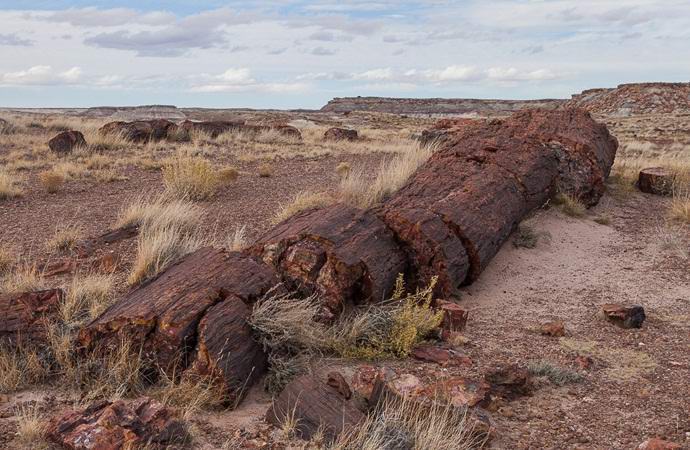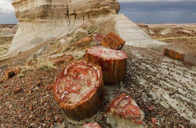 Amerikan kaupunkien välillä Holbrook ja Navajo Arizonassa hämmästyttävä kansallispuisto nimeltään Petrifide Forest, joka venäjän kielellä tarkoittaa “kivettynyttä” “Ja tämä ei missään nimessä ole taiteellinen liioittelu. Tässä alue on suuri määrä kivettynyttä puuta, ikä joka ylittää 225 miljoonaa vuotta. Ainutlaatuinen puistoalue Se on 37851 hehtaaria.