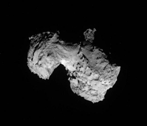 valokuva avoimista lähteistä Näimme komeetta tieteellisen koettimen ansiosta P67 epätavallisesta kulmasta. Sunnuntaina 3. elokuuta komeetta P67 / Churyumova-Gerasimenko kuvattiin tieteellisellä tavalla Rosetan automaattisen planeettavälisen aseman kamerat etäältä 300 km. Eurooppalainen avaruuskoetin on todella jo sellainen tuli niin lähelle komeetta. Kuva otettiin kameralla. NavCam.
