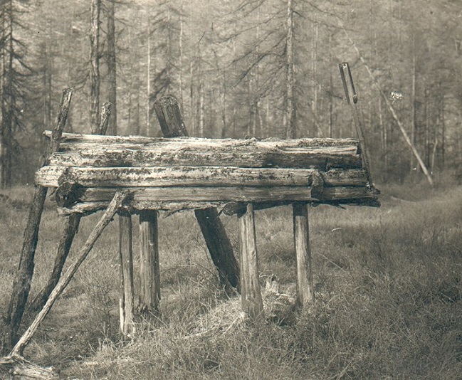 Jakutiassa ei ollut hautausmaita. Talvet kestävät 6,5 – 9 kuukautta, lämpötila laskee -50 asteeseen. Jo kesällä maa on täällä sulaa enintään 1,5 m syvyyteen, ontto reikä siihen kuolleen henkilön hautaaminen on vaikea tehtävä. Siksi kuolleet täällä usein palanut, ja shamaanit haudattu ilmalla ns Arangasah: kannelle asetettiin navat, joihin ruumi sijoitettiin shamaani ja hänen veneensa ominaisuudet.