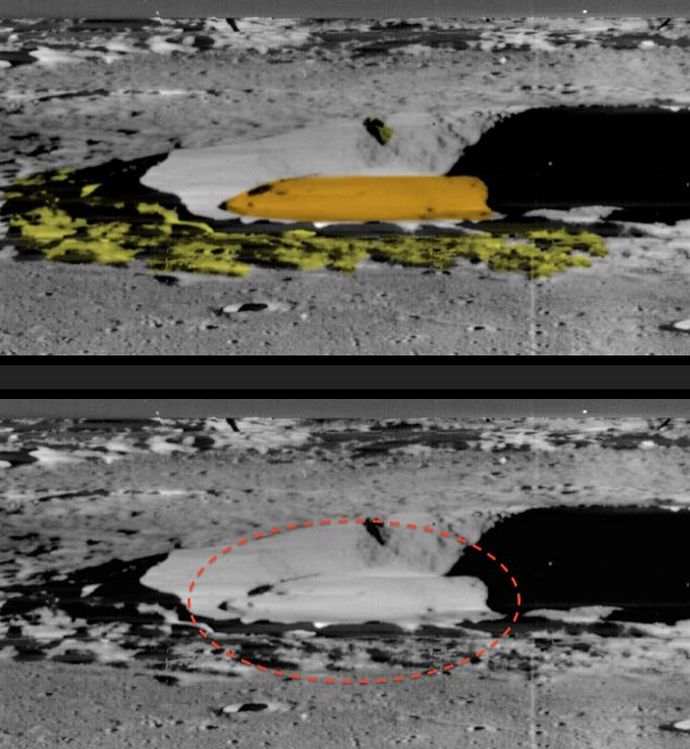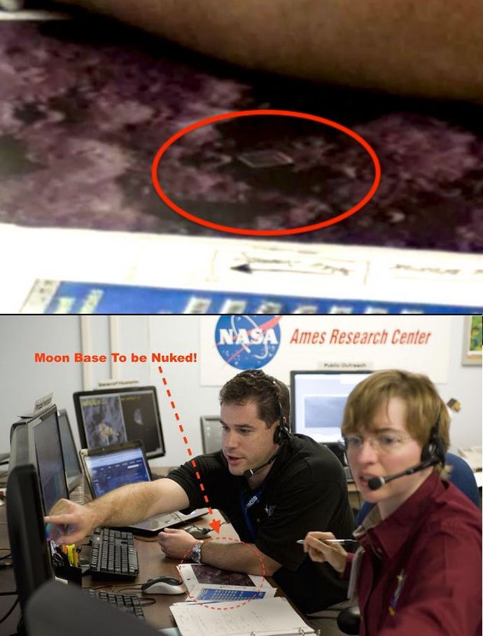 Joten sanovat esimerkiksi amerikkalaiset ufologit, Secure Team 10. He väittävät, että Google Earth -karttoja käyttämällä se on tänään kuuhun helppo havaita fantastisia rakennuksia, ilmeisesti harmittomia alkuperä, joka sitten katoaa esitetyistä kuvista NASA. Alla oleva, vuonna 2009 otettu valokuva on selvästi näkyvissä samanlainen “kompromitoiva todiste” yhden amerikkalaisen työntekijän käsillä Avaruusjärjestö Anthony Colaprete. Sitten tämä “kompromitoiva todiste” vain kadonnut kuvasta …