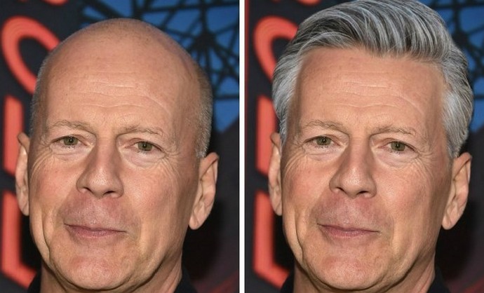 Hiuksilla Bruce Willis on täysin erilainen henkilö.