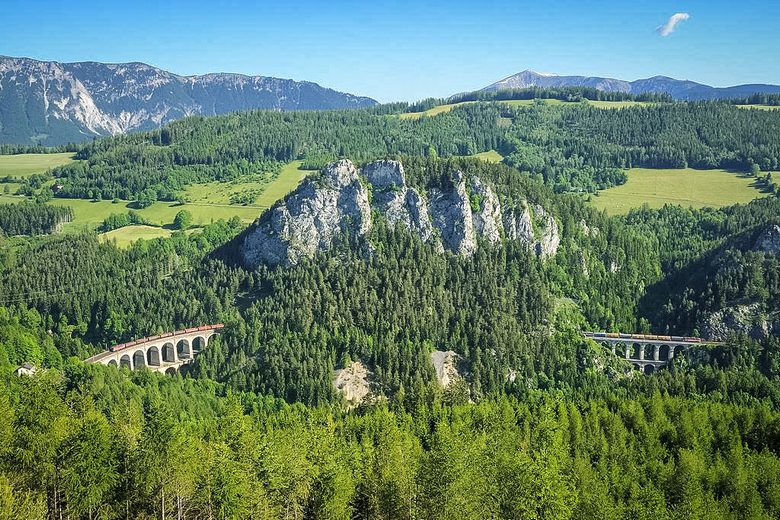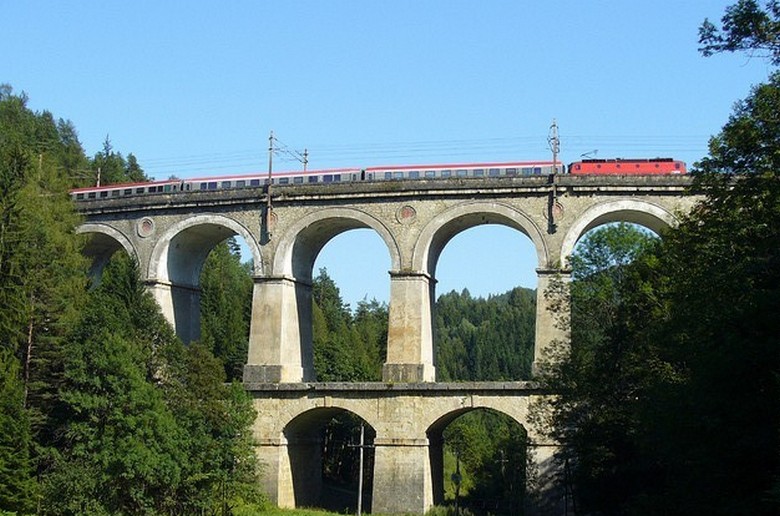 Tämä on Itävallan Semmeringin rautatie, rakennettu XIX luvun puoliväli, joka toimii edelleen kunnolla. lisää lisäksi vuonna 1998 se sisällytettiin maailmanluetteloon Unescon perintö. Tie törmää ensinnäkin saavutuksiin tuon ajan vesirakentaminen ja arkkitehti Carl von Gega, joka loi tämän ainutlaatuisen projektin.