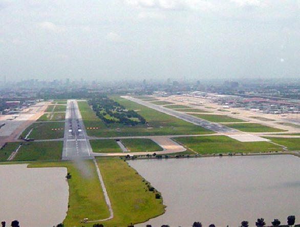 4 Don Mueangin kansainvälinen lentokenttä. (Bangkok, Thaimaa). Kaukaa Don Muangin lentokenttä näyttää kuin mikä tahansa muu lentokenttä, mutta vain kaksi osa-aikaiset kiitotiet sijaitsevat 18-reikäinen golfkenttä. Kuitenkin hallinto golfkenttä vakuuttaa, että pelaajille ei ole vaaraa.