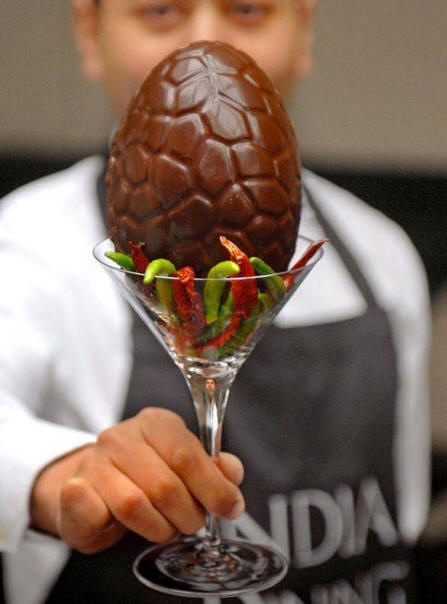 Tämä pääsiäismuna on niin terävä, että vierailijat ennen syömistä allekirjoittaa paperin, joka vahvistaa ilmoittavansa heidän toimintansa. Tämä muna kypsennetään jopa erityisissä suojaavissa käsineet. Kuumaa pippuria tässä munassa on 300 pullot Tabasco-kastiketta, joka on miljoona Scoville-mittakaavassa. Uskomatonta, että muna ei ole mausteinen ruokalaji maailmassa. 55-vuotias Ian Rothwell oli aiemmin tänä vuonna ensimmäinen henkilö täysin voittanut maailman terävin curry, joka oli valmistettu 30 Naga Infinity chili -pippurista. Curry mikä nimettiin “Widower” yhdessä brittiläisessä ravintolassa, jonka arvosana oli kuusi miljoonaa pistettä Scoville-asteikolla – tämä on enemmän kuin kaasua vuonna 2006 tölkit pippuria.