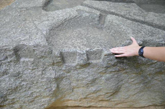 Megalithin päällä olivat kapeat, jotka muuten olivat täydellisiä valettu, veistetty, sulanut … (valitse oikea sana itse)! Ei jälkiä karkeasta käsityöstä, taltta ja taltta Se oli. Masoud Iwafunin materiaali on graniittia, kuten kuvauksessa on kirjoitettu lähellä megaliittia, ja minä itse, kun otin kivinäytettä, järjestyksessä kesti noin 30 minuuttia. On vaikea jättää naarmu rodulle!