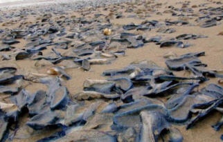 Velella ei voi elää kauan ilman vettä, ja jos olennot eivät pystyy palaamaan merelle laskuveden aikana, he kuolevat sisällä muutama tunti.