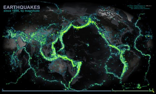 Sana ainutlaatuisen kortin luojalle: “Yllätyin summasta vuosien mittaan havaittuja maanjäristyksiä kaikkialla – Seattlesta Wellingtoniin. “Tosiaankin, John Nelsonin karttaan Piirrettiin 203 186 pistettä, joissa eri vuosina, vapina on voimakkaampaa kuin neljä pistettä. maanjäristykset