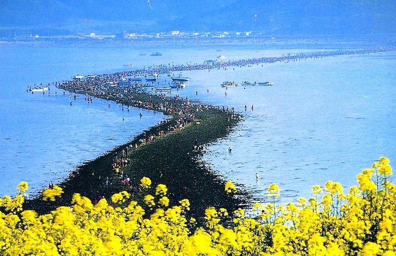 Kahdesti vuodessa voidaan havaita lähellä Etelä-Korean Jindoa ainutlaatuinen luonnonilmiö, joka muistuttaa Vanhan testamentin tarinaa kuinka merivedet jakautuivat Mooseksen ja Israelin poikien edessä. Keltainen meri jakaa tunnin ajan Jindon ja Modon saarten välillä, avaamalla tien pituus 2,8 kilometriä ja leveys 40-60 metriä. Se on esiintyy helmikuun viimeisenä päivänä ja myös kesäkuun puolivälissä.