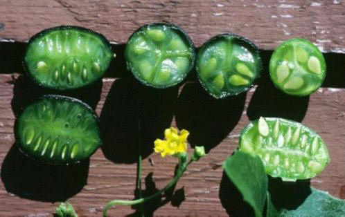 Фото из открытых источников Мелотрия шершавая – многолетняяPäiväntasaajan Afrikan sademetsissä kotoisin oleva liana. pieni vihreät hedelmät, joiden maku on selkeä marmorikuvio muistuttavat kurkkuja, jotka voidaan syödä tuoreina tai purkitettuina.