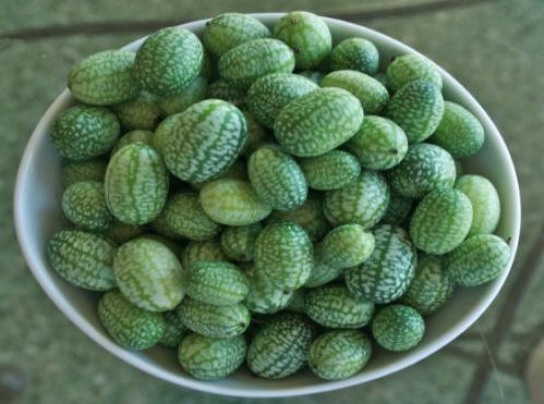 Valokuvia avoimista lähteistä Ja voit myös ylittää punaisen kurkku, meloni, kurpitsa ja tavalliset kurkut hauskoja hybridejä, joiden väri on epätavallinen. Afrikkalainen mini kurkku – Мелотрия (Melothria scabra)