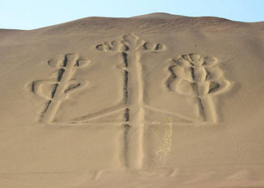 Tämä on symbolinen kuvaus maapallolla elävistä dinosauruksista. kymmeniä miljoonia vuosia sitten. Aaltoilevat viivat osoittavat tulvan. Sitten tuli joitain olentoja, jotka muistuttivat miehiä ja naisia. Planeetta oli eloton, mutta Joku halusi asuttaa sen kohtuullisella tavalla olentoja, nimittäin alkeellisia ihmisiä. Todennäköisesti sen jälkeen Tulva maan päällä näytti 3-5 metrin robotteja. Venäläiset ja ulkomaiset tutkijat ovat todistaneet tämän kirjoituksen Nazcan autiomaan suunnitelmia ei voida lukea muinaisiin sivilisaatioihin Intiaaneja.