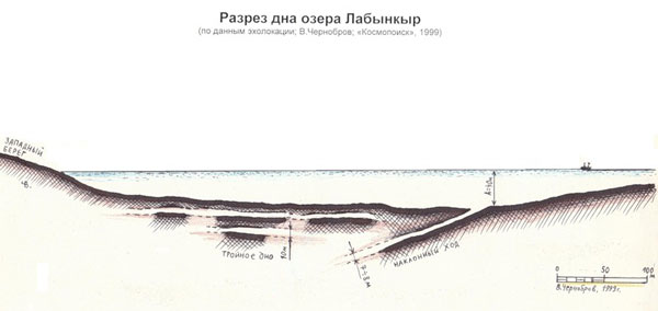 Ajatus eläimen vartioimisesta koiruoholla oli käsitelty, mutta ryhmän jäsenet teki kaiken voitavansa. Löydettyään veneen he saivat järven kaiutin ja löytyi 40m syvyydestä. sukellusveneiden kaivokset, yhdistää Labynykr naapurimaiden säiliöihin. Nämä “käytävät” ovat melko voisi valita Labynkyrin paholaisen asunnoksi, mutta pysyikö hän siellä asumisena, mysteeri.