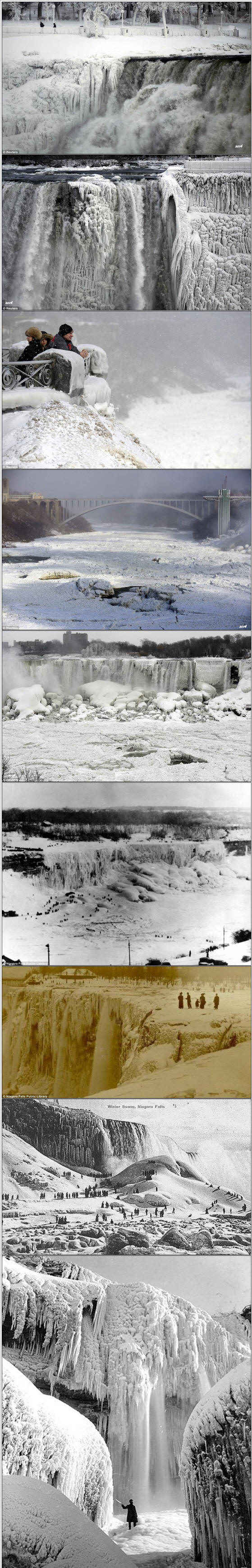 Ennätyksellisen kylmä Yhdysvalloissa ja Kanadassa jäätyy Niagaran putoukset. Daily Mailin mukaan pakkaset olivat niin vahva, joka kirjaimellisesti “pysäytti” veden virrat, jotka onnistui jäätymään ennen kuin ne koskettivat pohjaa. Mukaan Julkaisut, vesiputous ei ole täysin jäätynyt, suihkukoneita silti lyödä jäässä vettä. Jäätynyt Niagaran putous on kuitenkin erittäin upea harvinainen esiintyminen. Joten historiallisten tietojen mukaan vettä on täällä jäätyi vain 2 kertaa: vuosina 1848 ja 1912. Samaan aikaan, mukaan julkaisujen, Yhdysvaltain ja Kanadan vilustumisen pitäisi olla loppunut toiseksi puoli viikkoa, jonka jälkeen sulatus alkaa.