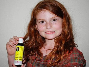 8-vuotias Allana Myers rakasti pyöräillä jatkuvasti tuli kotiin verta värjätyillä polvillaan, jotka äiti jatkuvasti siteissä. Menetelmä siteiden poistamiseksi oli tuskallinen. Huutaen 10 l. kyyneliä, tyttö keksi työkalun, joka tekee tästä prosessi on kivuton. Tuotteen koostumus sisältää vettä, laventelia öljy ja saippua.