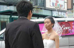 valokuva avoimista lähteistä “Naisen kauneus kasvaa hänen kanssaan vuosien varrella ”, väitti Oscar-palkittu kauneus Audrey Hepburn. kuitenkin Kuten äskettäinen tapaus osoitti, kaikki miehet eivät ole samaa mieltä sitä. Shanghaiistin mukaan kaupungin asukkaat viime maanantaina Kiinassa, Shenzhenissä, käydään kiihkeää keskustelua nuoren miehen ja vanhan naisen välillä hääpuku. Pian kävijöille tuli selväksi vanha lady ja nuori 20-vuotias tyttö, joka käyttää meikkiä ja ylähihnat, jotka ovat ”ikääntyneet” 50 vuotta. Nuori kiinalainen nainen järjestetty näyttely, josta tulee 70-vuotias nainen selvittääkseen onko sulhasen uskollinen hänelle vanhetessaan.