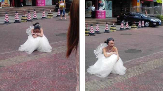 Valokuvia avoimista lähteistä Kun hän kieltäytyi, sulhanen otti väärä ilme ja sopivassa raivossa repi pois ja heitti lasinsa maahan. Sitten hän kääntyi ja käveli pois, jättäen itkua hämmentymättä morsiamen kadulla.