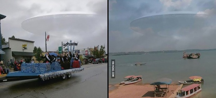 Muuten, tämä piirros fantastisesta muukalaislaivasta useita kertoja käyttävät sensaation ystävät, jotka haluavat kiinni pelosta epäuskoisia asukkaita. Katso vain valokuvia yllä ja alla, joka kerralla esiintyi myös maailman laajuudessa Web.