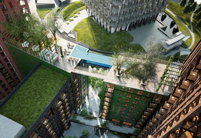 Sky Pool (taivaallinen uima-allas) sopii orgaanisesti asuinkompleksiin Ballymoren tilaamat suurlähetystöpuutarhat. Hän rakensi tulee olemaan Arup-rakennusyritys Nine Elmsin alueella lähellä keskustaa Lontoosta. Tämän luovan projektin on luonut Eckersley O’Callaghan, joka tunnetaan upeasta suunnittelustaan kehitys monissa Apple-kaupoissa – melkein vuonna kaikkialla maailmassa.