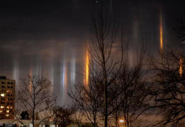 Nämä valot eivät olleet aurora (eikä UFO, tämä on tärkeää), he tunnetaan nimellä “valon pylväät”. Ruotsin sääennusteen mukaan ja hydrologinen instituutti, tämä on valo, joka heijastuu jääkiteet, jotka muodostuivat ilmaan kylmän ollessa. liittyvä valopilareita valokuvataan myös muualla ei merkkejä tuntemattomista lentävistä esineistä, ne eivät ole mukana.