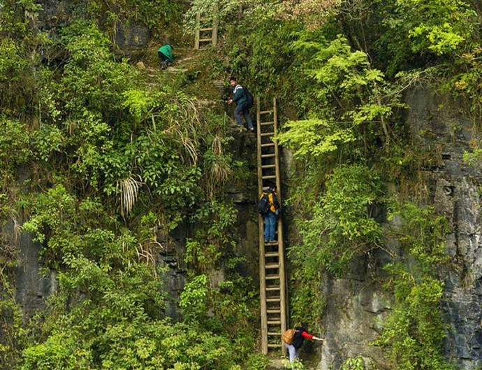 Yhtä vaikea tie kouluun voidaan kutsua lapsille Zhang Haiwanin kylä. Ja vaikka tässä tapauksessa etäisyyksiä ei ole, mutta poikien ja tyttöjen on noustava päivittäin ja Siirry alas ahkerasta portaasta pelkälle kallionkorkeudelle 70 metriä ilman vakuutusta. Upea, mutta Kiinalaiset lapset toteuttavat tämän jonkinlaisella fantastisella helppous. Kaikille kiinalaisille ei yleensä ole korkeuden pelkoa, se on mahdollista arvioi ainakin millä sirkuksen virtuoosisuudella ja pelottomuudella he ovat rakentaa ja korjata vuoristovaellusreittejä.
